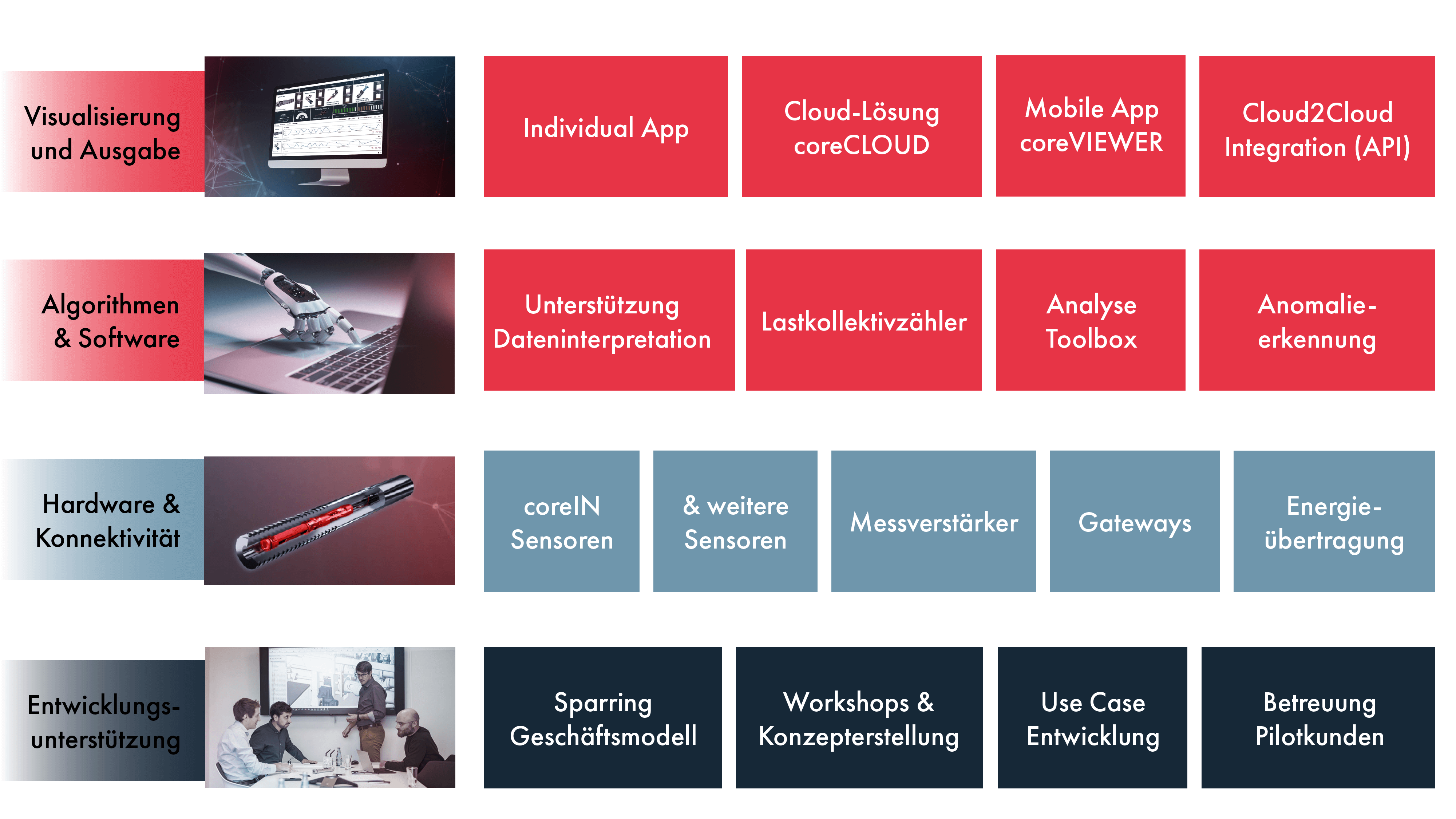 Smarte Sensoren und intelligente Komponenten treiben die Digitalisierung im Maschinenbau voran. Maschinenbauer werden damit vom Maschinenlieferanten zum „Service-Partner“ ihrer Kunden. Neue digitale Geschäftsmodelle versprechen dabei attraktive neue Ertragsquellen. Damit Sie diese Chancen realisieren können, bietet Ihnen core sensing ein ganzheitliches Baukastensystem aus Hard- und Software-Produkten, Methoden und Leistungen.
